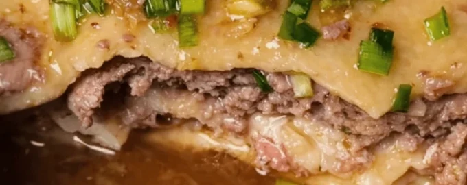 To danie jest przygotowywane warstwowo: cienkie ciasto, soczyste mięso mielone i pikantny sos. Rezultatem jest skrzyżowanie pierogów gotowanych na parze z orientalną wersją lasagne.