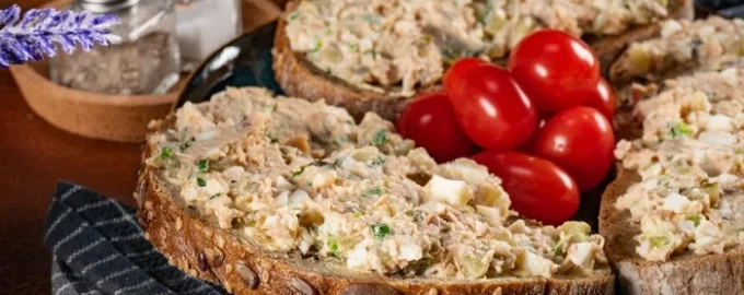 Prosta, smaczna wersja przystawki z bochenka, ryby z puszki i warzyw.