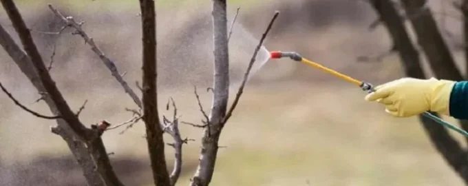 Ponieważ pierwszy oprysk jest najważniejszy, należy zwrócić na niego szczególną uwagę. Pierwszy oprysk należy wykonać po pojawieniu się pierwszych pąków, gdy temperatura w ciągu dnia nie wzrośnie powyżej 4°C. Można użyć produktów o silnym stężeniu, ponieważ na drzewach nie ma jeszcze liści, a kora chroni drzewo przed szkodliwym działaniem. Jednocześnie nadal warto rozważyć stan każdej rośliny z osobna: jeśli jedna jest jeszcze „uśpiona”, inna może już być „obudzona” w tym czasie.
