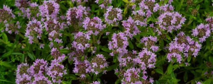 - Tymianek pełzający (Thymus serpyllum) tworzy gęstą, aromatyczną pokrywę małych liści. Latem kwitnie różowo-fioletowymi kwiatami. Roślina jest odporna na różne gleby.